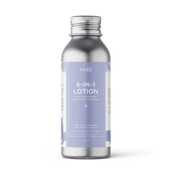 The Organic 6-in-1 dog body lotion is suitable for the treatment of cuts, bruises, burns & lesions from chronic skin disease, including mange and folliculitis. It prevents reinfection and is the only organic remedy of its kind available in the market. Our dog body lotion prevents cracked skin, chafing, and drying. It keeps the skin hydrated and is a good moisturiser.